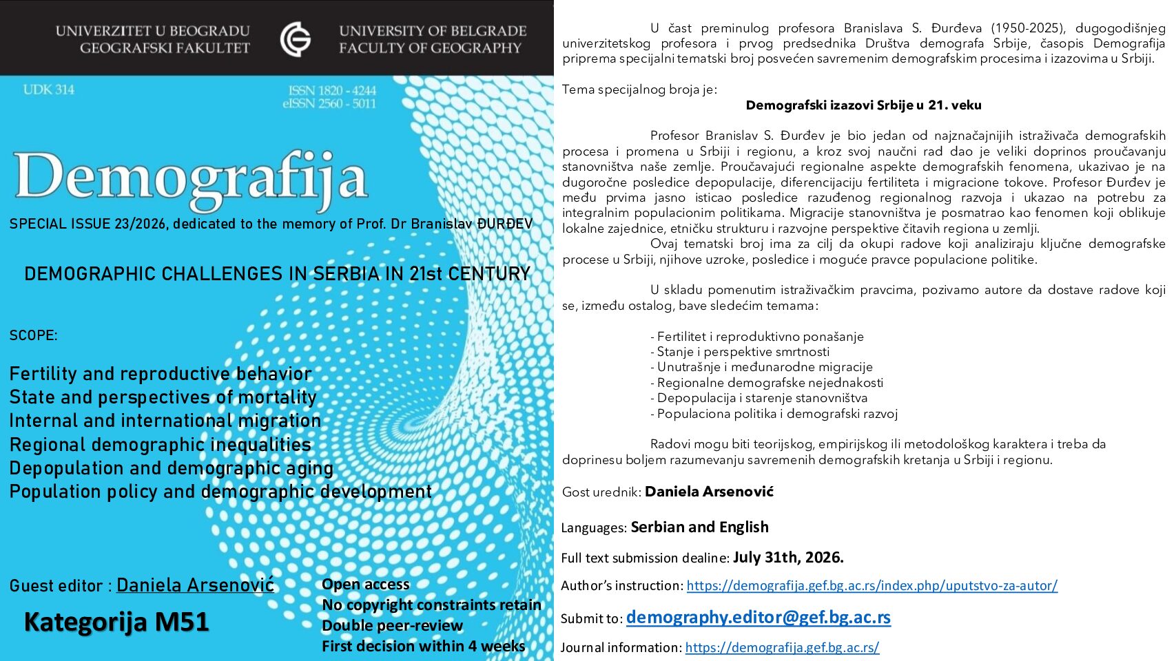 - Significant institutional support through collective membership fees (from the Statistical Office of the Republic of Serbia and the Faculty of Geography, University of Belgrade),