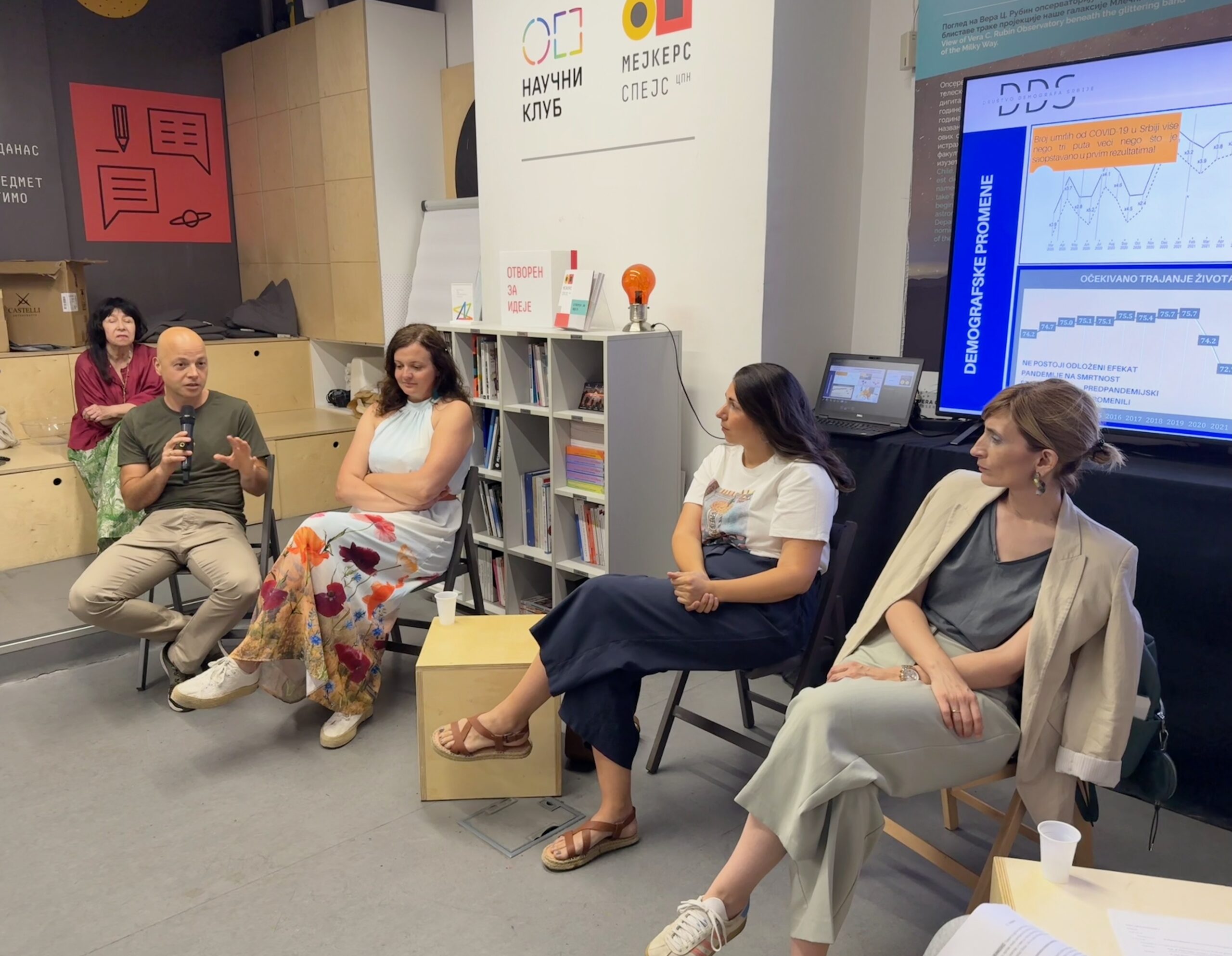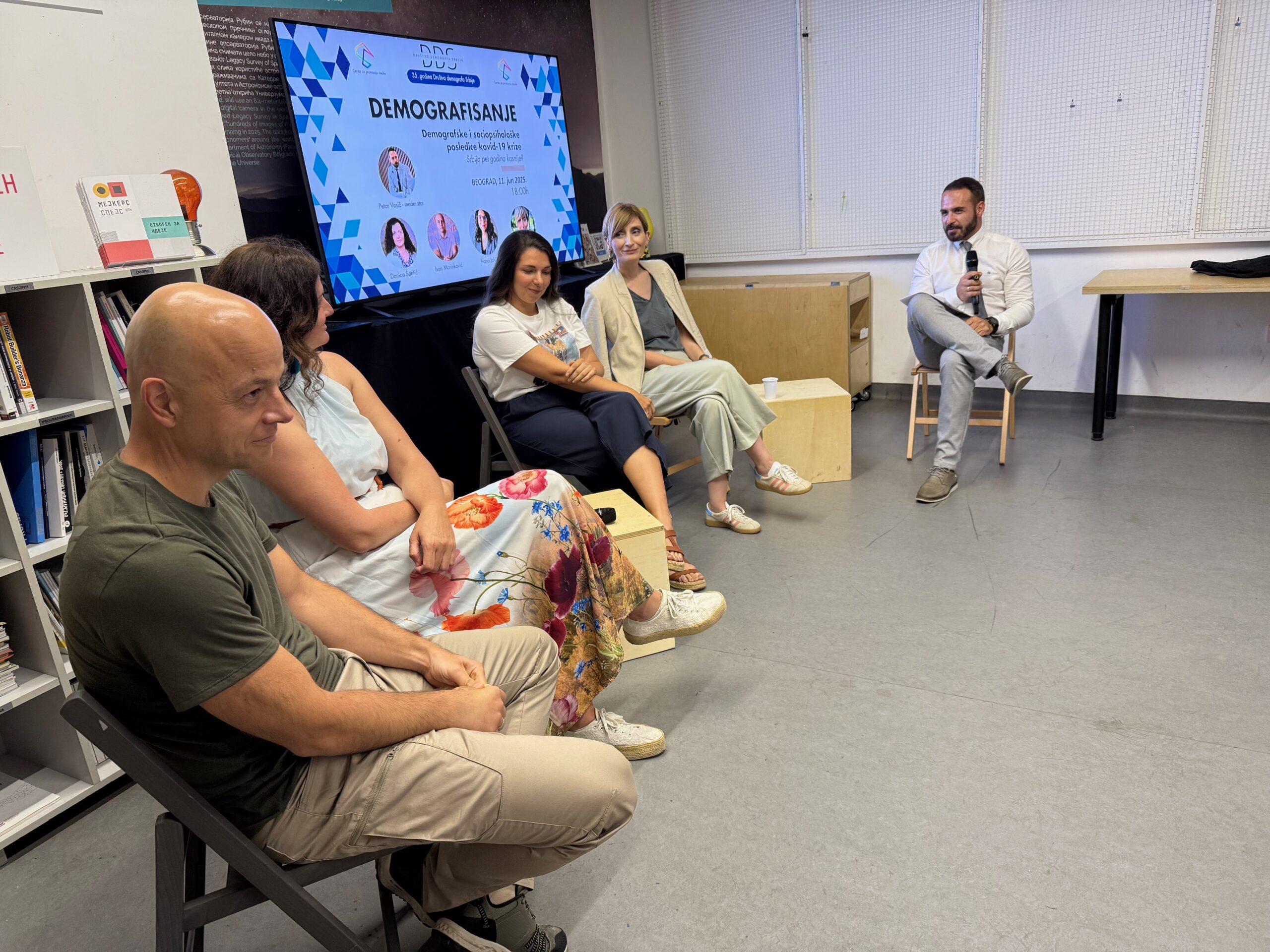Na prvom Demografisanju održanom uživo, u predvečerje 11. juna 2025. godine, na početku je simbolično obeleženo 35 godina postojanja Društva demografa Srbije. Predsednik DDS, Vladimir Nikitović, kratko se, kroz pregled najvažnijih aktivnosti, osvrnuo na istorijat Društva, osnovanog 21. juna 1990. godine, i odao priznanje pokretačima.