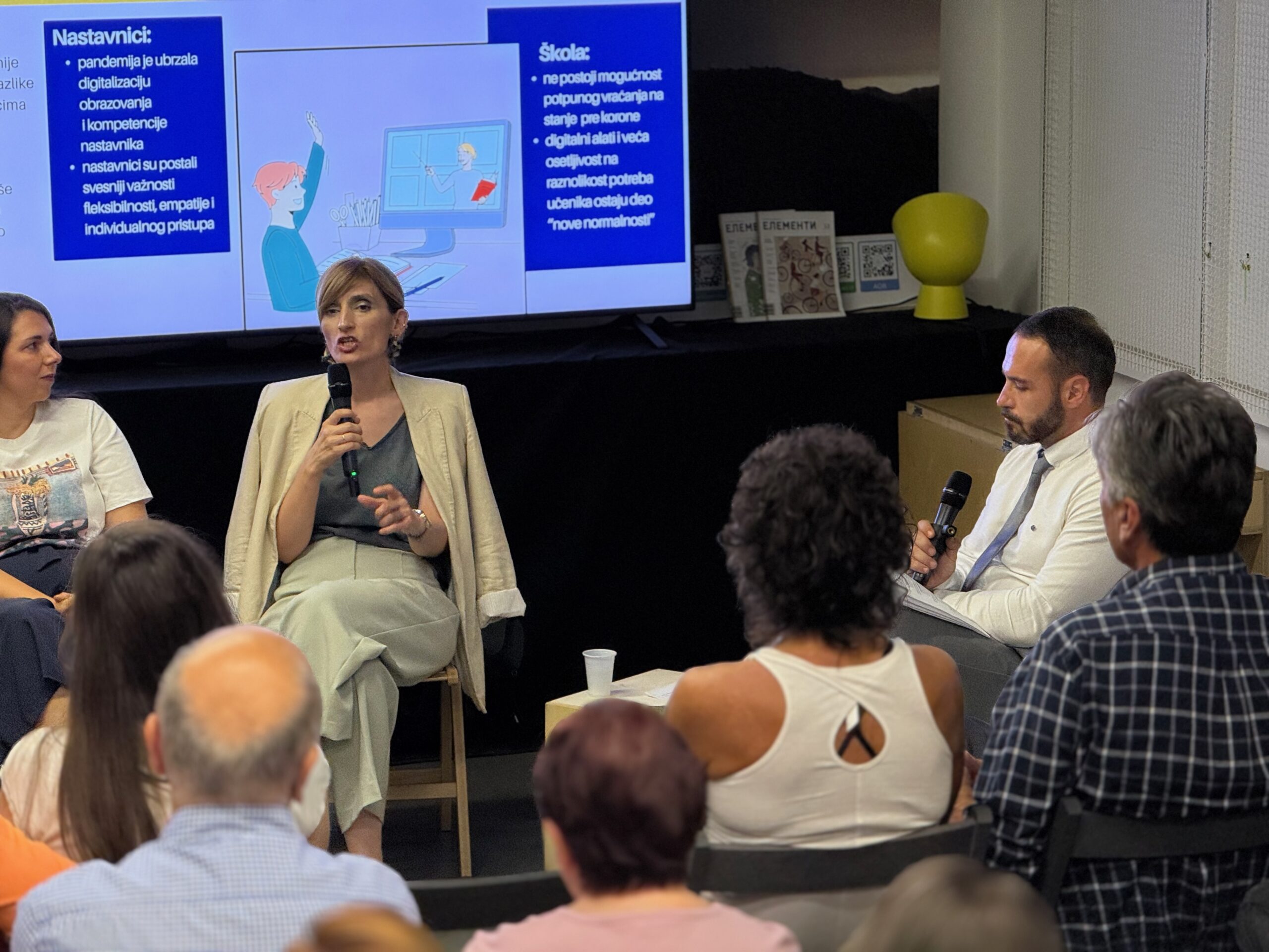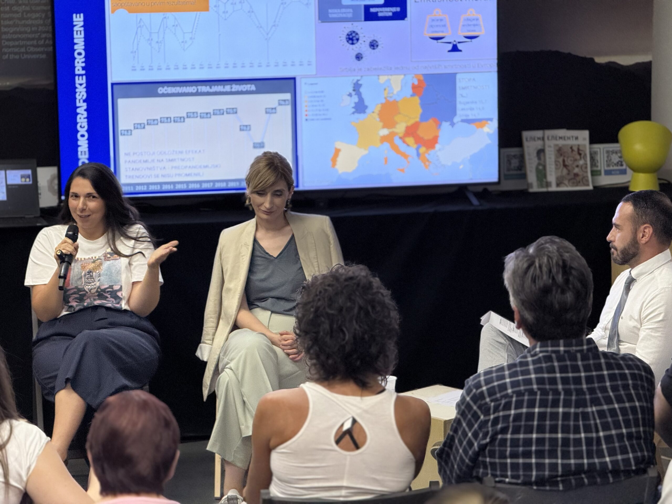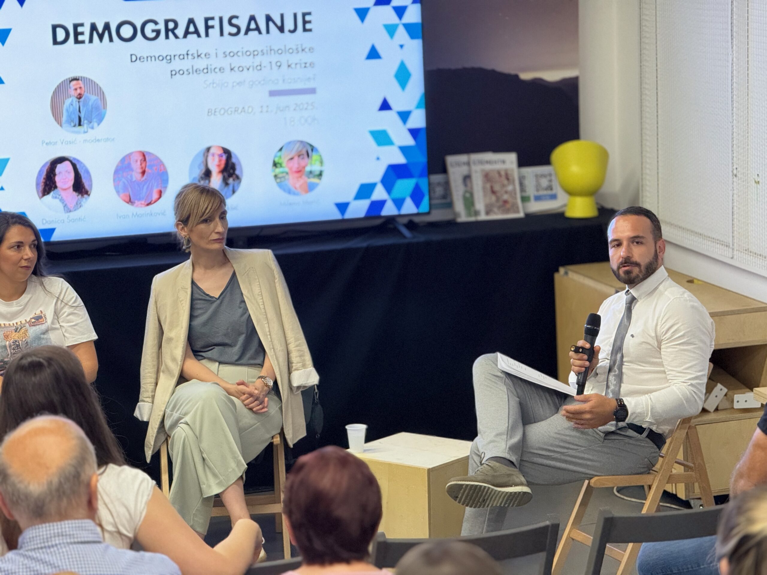 Psihološkinja, doc. dr Ivana Jakšić, osvrnula se na psihološke posledice pandemije i na društvene procese koje je ova kriza ubrzala. Pandemija je, kako je istakla, ostavila snažan trag na psihičko zdravlje pojedinaca, ali i otvorila prostor za preispitivanje ličnih i kolektivnih vrednosti. Naglasila je da je jedan od pozitivnih ishoda bio veći fokus na mentalno zdravlje. Društvo je počelo da otvara teme koje su do tada bile marginalizovane – psihološka podrška, zajedništvo, solidarnost. Uprkos izazovima, kao što je porast teorija zavere i opadanje poverenja u institucije, društvo je pokazalo otpornost zahvaljujući kulturološkoj orijentaciji ka porodici i bliskosti. Kao zaključak, panelistkinja je pozvala na redefinisanje roditeljstva i društvenih normi — u pravcu manje iscrpljujućeg, a više podržavajućeg modela, gde se u centar stavljaju odnosi, podrška i empatija.
